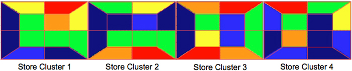 Now suppose this segmentation into clusters represented a single chain of hundreds or even thousands of stores. These clusters would then mean, that from the shoppers' usage points of view, there are a few basic types of stores in that particular chain, and those types have distinctive relationships to their shoppers. Rather than merchandise to the shoppers in those distinctive environments relying on "received wisdom," one can match more closely the merchandising to the store cluster. The advisability of this will become more apparent when we sharpen the focus on the four sectors in the center-of-store in a single cluster of congruent stores.